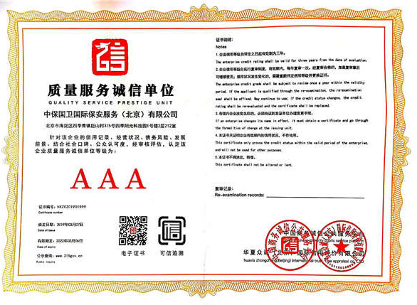 中保國(guó)衛(wèi)國(guó)際保安服務(wù)(北京)有限公司,屬中保國(guó)衛(wèi)集團(tuán)旗下子公司。能全方位的為大型客戶提供優(yōu)質(zhì)的安保、押運(yùn)服務(wù),是集人防和技防于一體的新型正規(guī)化綜合安保押運(yùn)服務(wù)企業(yè),提供人防、物防、技防、聯(lián)網(wǎng)報(bào)*、非武裝押運(yùn)等安防相關(guān)的一站式服務(wù)。 公司在國(guó)內(nèi)多省設(shè)立有分公司及分支機(jī)構(gòu),著重提升安全押運(yùn)、智能技術(shù)押運(yùn)及安全技術(shù)防范相關(guān)的服務(wù),業(yè)務(wù)范圍覆蓋全國(guó)一、二線城市、港澳地區(qū)以及海外地區(qū)。安保方面主要為政府機(jī)構(gòu)、金融機(jī)構(gòu)、企事業(yè)單位、醫(yī)療衛(wèi)生、高等院校、工業(yè)園區(qū)、大型商場(chǎng)、高檔住宅、智能商務(wù)樓、大型活動(dòng)提供門衛(wèi)、守護(hù)、巡邏、押運(yùn)(非武裝)、安全檢查、保安特勤、私人護(hù)衛(wèi)、消防中控、安全技術(shù)防范、遠(yuǎn)洋護(hù)航等全方位服務(wù),同時(shí)面向國(guó)際市場(chǎng),為中資企業(yè)在“一帶一路”沿線國(guó)家投資提供境外安保服務(wù)。 >> 更多內(nèi)容 |
